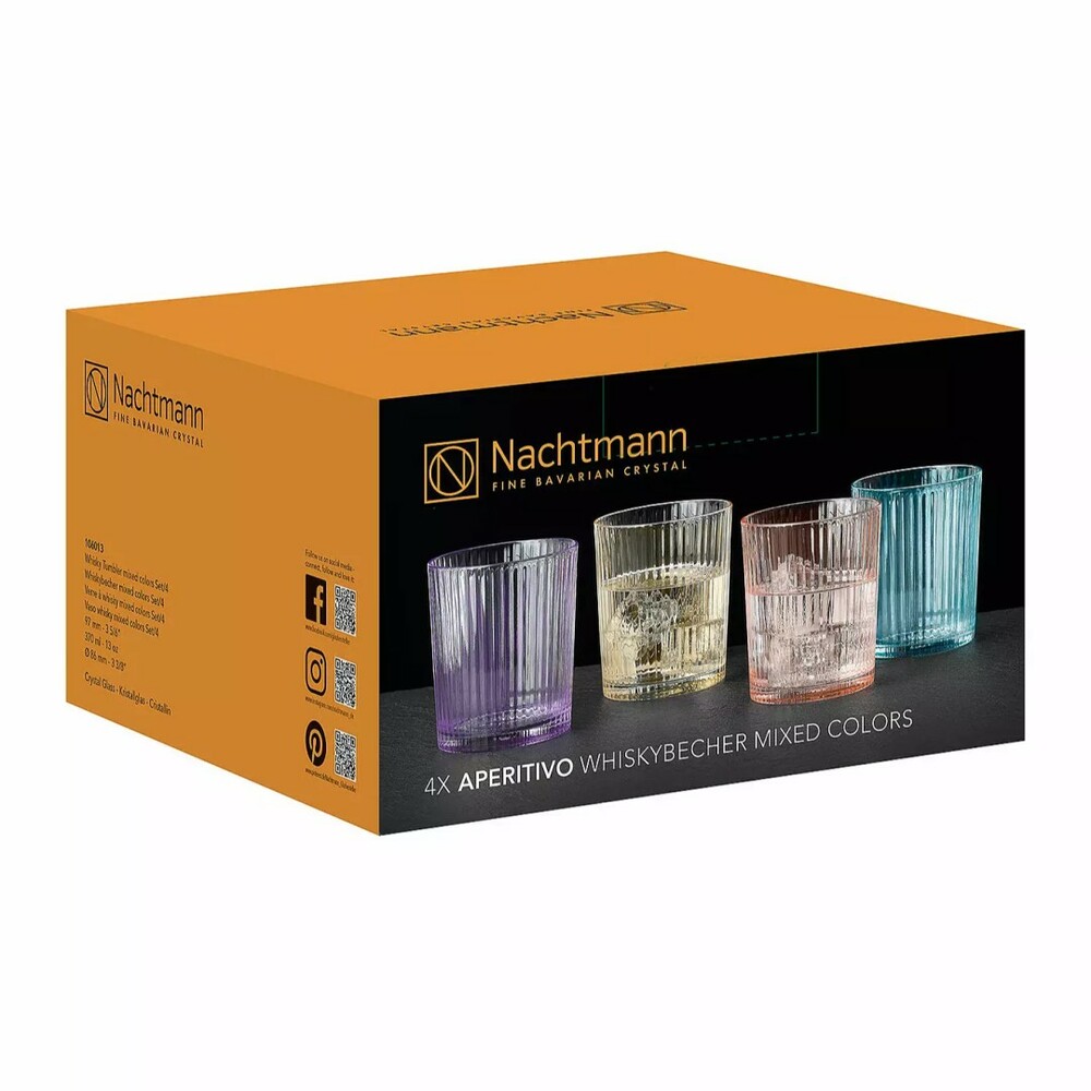 Набор из 4-х цветных стаканов Aperitivo Colors 370 мл (Голубой, Солнечный, Розовый, Фиолетовый), хрусталь, Nachtmann